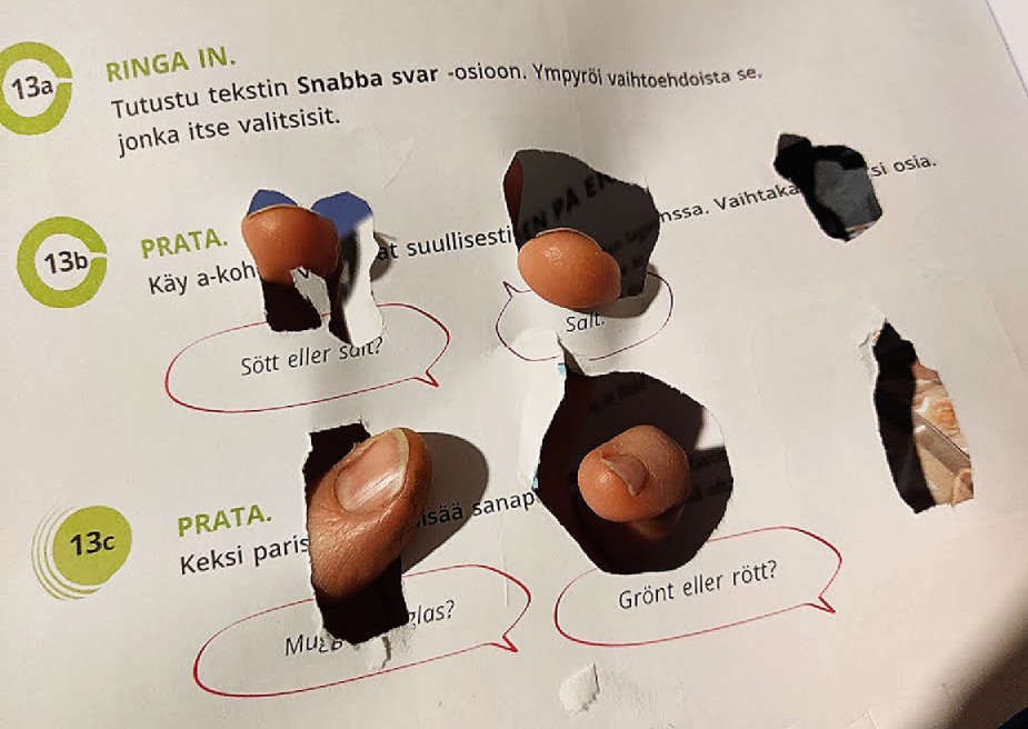 “Onko nuo miun lapaset?” katsoin tyttären käsiä. “Minun hyvät lapaset?”