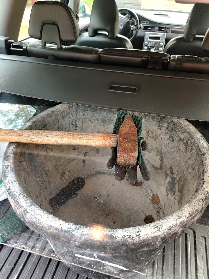 Vaikka olin koukunpaikat kaivanut esiin autosta, itse koukkuja tai hinausköyttä en ollut muistanut etsiä. Tosin en olisi niitä esiin saanutkaan, sillä myös takakontin lattialuukku oli umpijäässä vesikanisterikatastrofin jäljiltä. Mutta onneksi oli apua, traktorikuski kaivoi metrin mittaisen jakoavaimen traktorista ja kalautti pari kertaa, jäänsirpaleet sinkoilivat sinne tänne ja kansi tärähti auki.