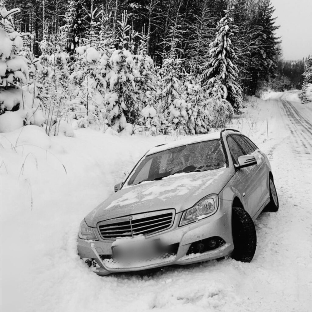 Miten hitossa tuo auto tuli noin hassusti…? Eikö se aikonu väistää? Keskellä tietä!? Mä en pääsis yhtään enempää reunaan.. Auto nytkähti, ku rengas haukkasi hankeen. Vaikka kuinka yritin saada autoa takaisin tielle, mese jatkoi matkaansa ojassa. Lumi pöllysi ympärillä, auto tärisi ja sitten se pysähtyi.