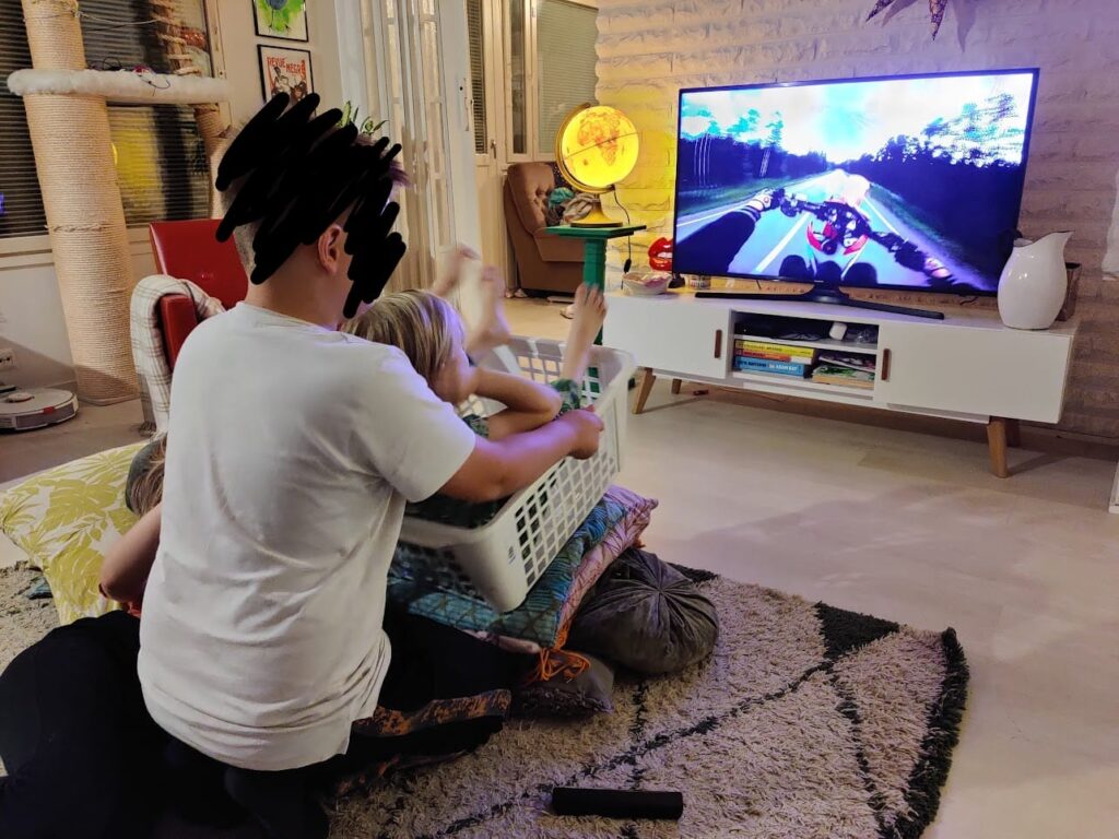 Itku voi tosin todistetusti tulla suhteellisen lyhyestäkin ilosta. Säästimme loppuun vielä kirsikaksi kakun päälle mäenlaskun rattikelkalla. Mies lähti mäkeen lapsen kanssa ja ajattelin ottaa lystin videolle. No, jostain syystä jarruttaminen ei onnistunut. Vauhti yltyi hurjaksi, ensin kyydistä putosi mies ja lopulta kelkka ajautui pienimmäinen kyydissä pusikkoon. Onneksi ei käynyt pahemmin, muistoksi jäi muutama naarmu ja erittäin sekava video.